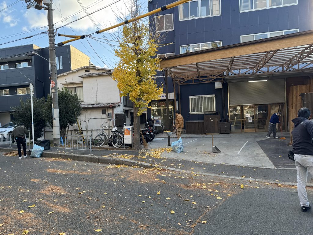 工場前面道路も落ち葉いっぱい。庇のトユも落ち葉で満タンでした。