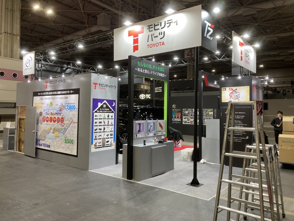 今回も前回と同じく、「トヨタモビリティパーツ」様、「阪神高速」様のブースを製作施工させていただきました。